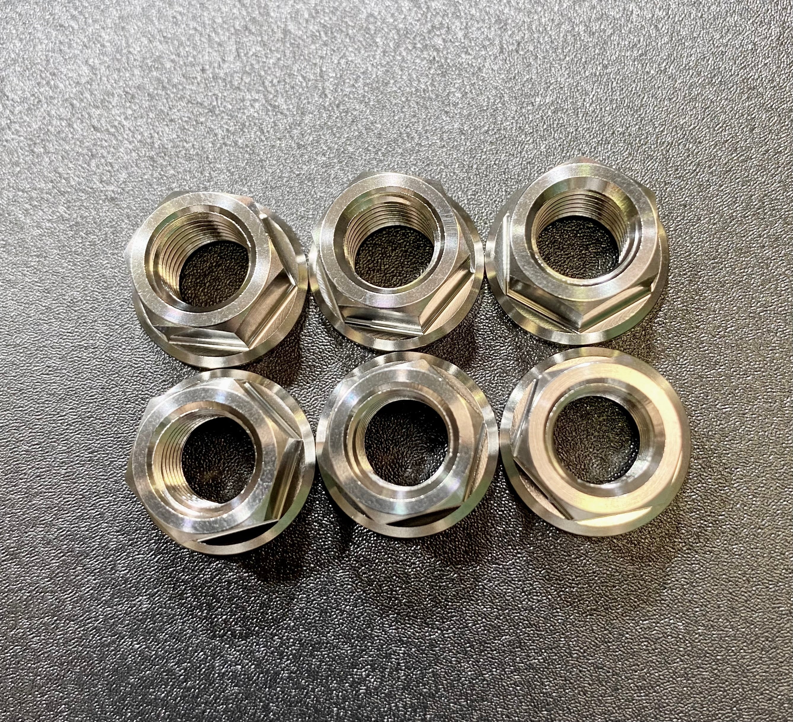 High-precision CNC-machined sprocket nut kit designed for secure rear sprocket mounting and long-term durability.